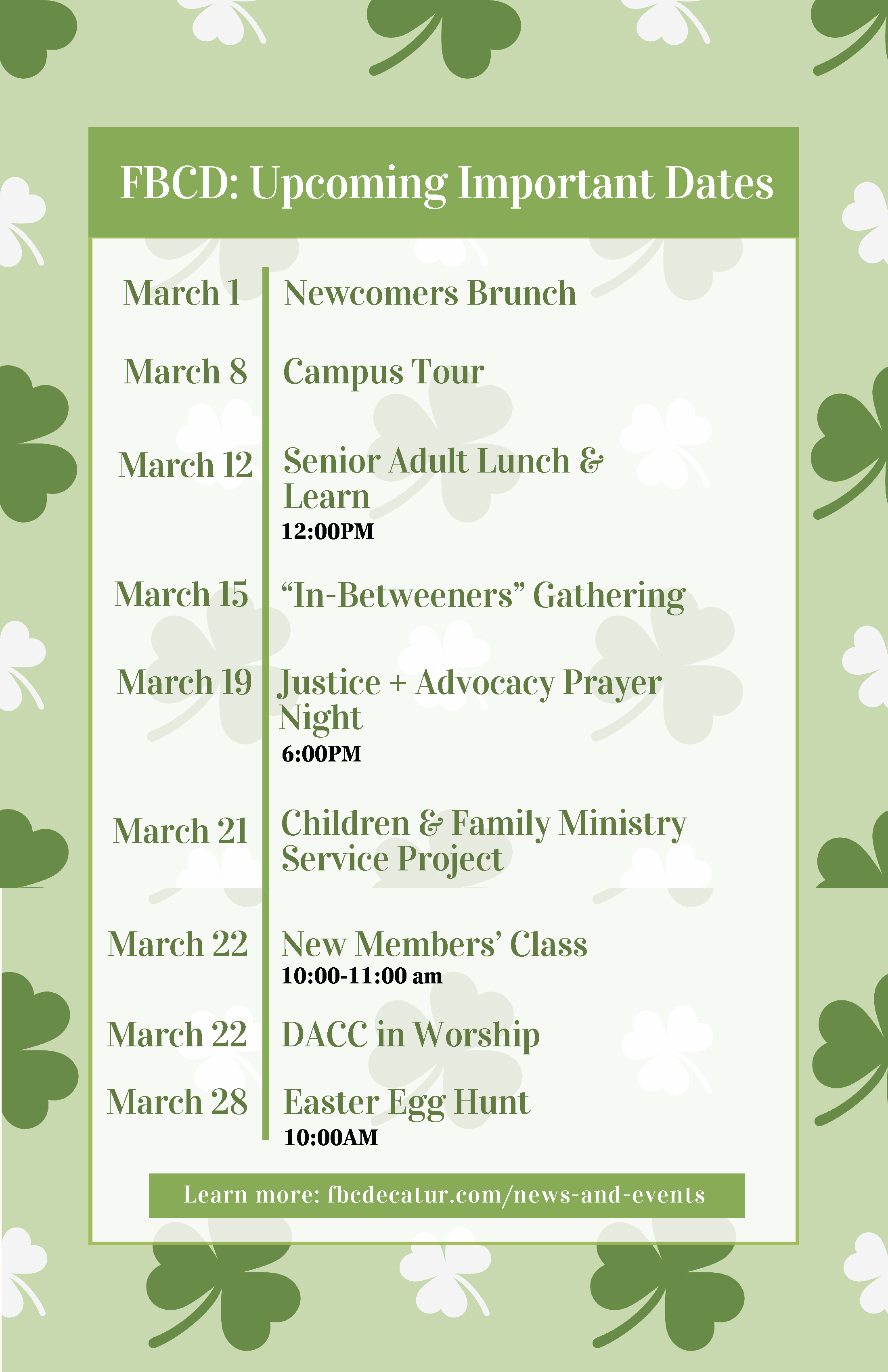 Finally, on March 22, we will offer a New Members Class for those interested in learning more about what it means to be Baptist and what it means to become a member of FBCD.