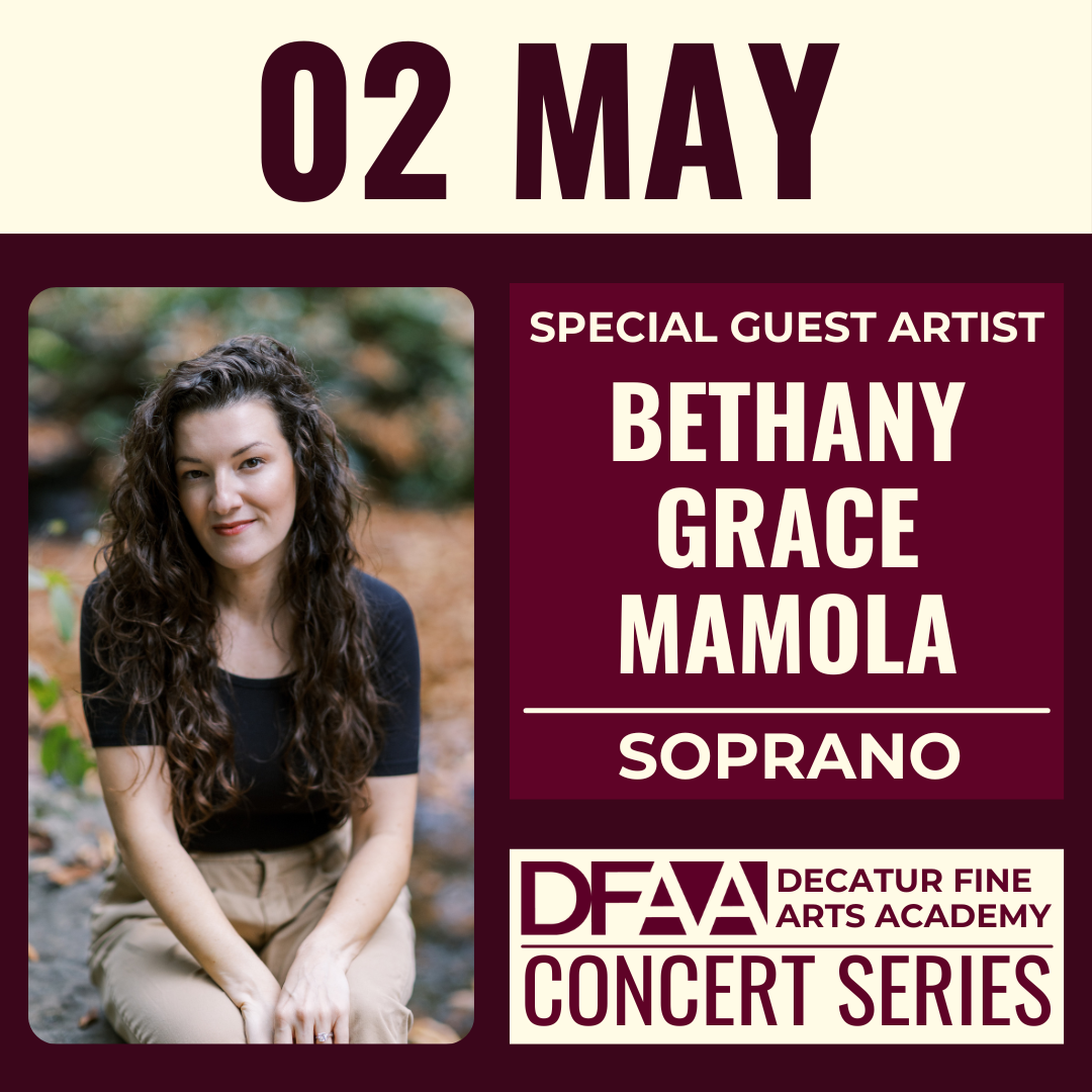 The DFAA Concert Series presents free concerts for the Decatur community featuring DFAA faculty and local guest artists. Our 2025-2026 season features saxophonist Julien Berger, guest pianist Clare Longendyke, soprano Bethany Mamola, along with featured guest artists.