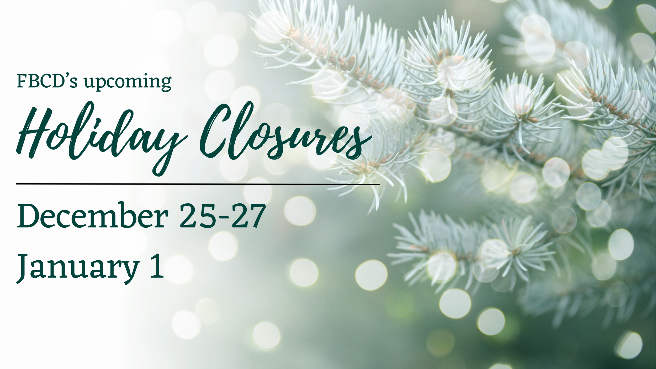 We will be closed December 25-27 and on January 1 in celebration of the holidays. If you have an emergency on those days and need to get in touch with a pastor, you can either email fbcd@fbcdecatur.com or call 470.947.2654 and leave a voicemail, and we'll get in touch with you as soon as possible. Otherwise, we'll be in touch once we're back in the office.